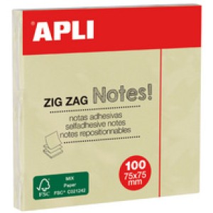 APLI plakbriefjes zig zag, 75 x 75 mm, geel