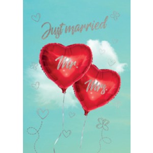 Cactus trouwkaart 'Meneer & Mevrouw harten van luchtballonnen'.