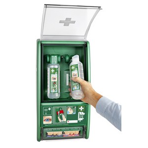 Oogdouche-station met oogzalfdispenser