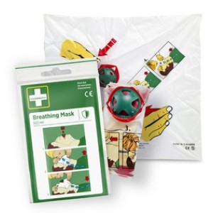 Adembeschermmaskertje in sleutelhouder-etui.
