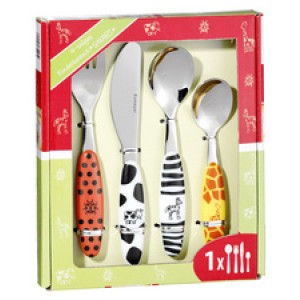 Esmeyer 4-delig kinderbestek Safari, RVS 18/0 met kleurrijke dierenmotieven