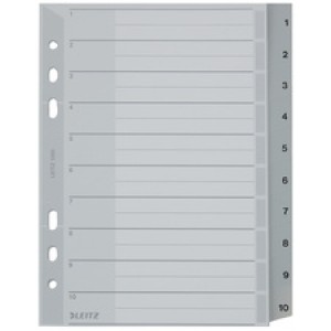 LEITZ tabbladen kunststof A5 1-10 grijs PP register