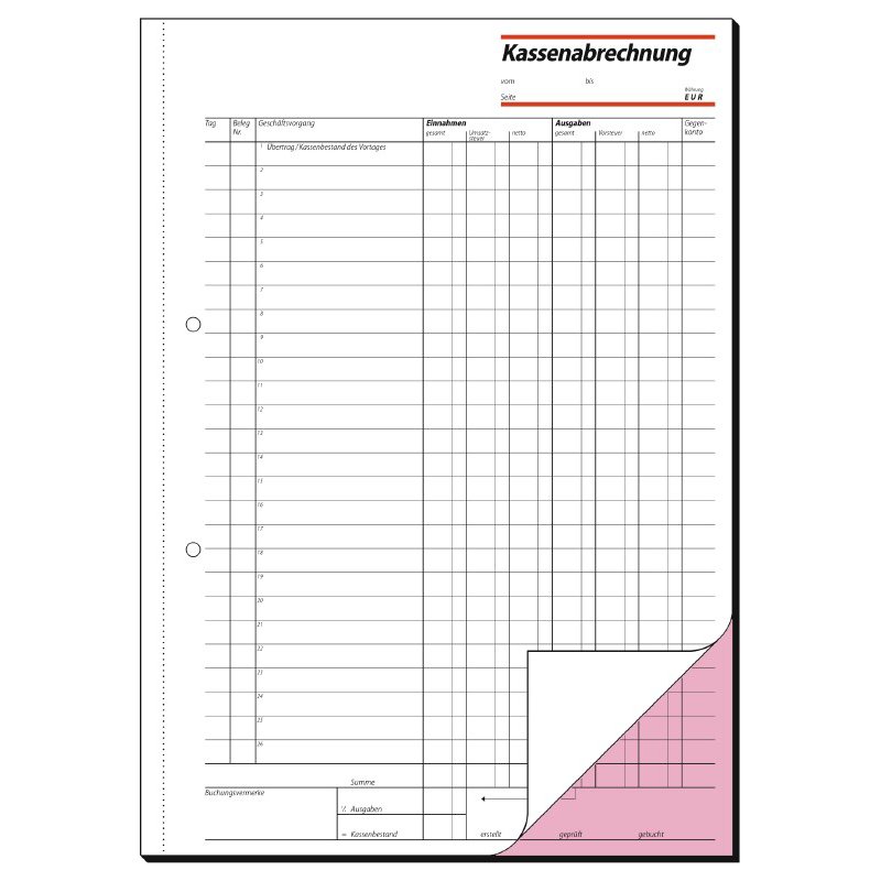 sigel formulierboek Kassenabrechnung SD006, A4, 2 x 40 vel, zelfkopiërend