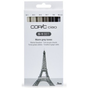 COPIC Marker ciao set warm grijs tinten, 5+1 stuks