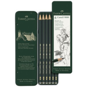 FABER-CASTELL potloden CASTELL 9000, 6 stuks in metalen etui