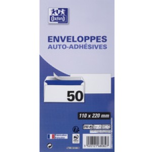 Oxford Enveloppen Velin DL, wit, zonder venster, zelfklevend