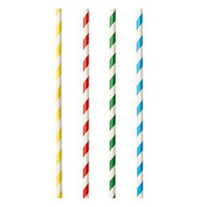 PAPSTAR Papieren rietjes 'Stripes' 210mm, gekleurd gesorteerd, 100 stuks