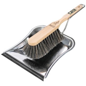 Bezem en blik met tuit, kunststof, grijs