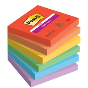 Post-it Zelfklevende notitieblokjes super sticky 76x76mm, 6 bloks gekleurd