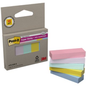 Post-it plaknotities super sticky Recycling notes, 76 x 127 mm, pastelkleuren, 8 blokken