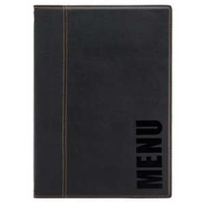 Securit menumap A5 echt leer zwart afwasbaar