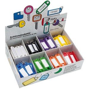 Sleutelhangers met ring, display voor 200 stuks.