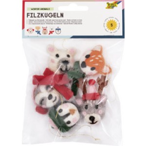 Folia viltkogels winterdieren set, 5 stuks
