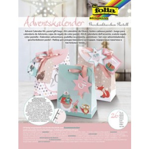 Adventskalender met pastelkleurige cadeauzakjes, set van 26