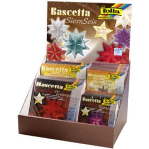 Folia vouwpapiertjes Bascetta-sterren in toonbankdisplay