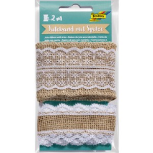 Juten band met kant, 2 x 1 meter