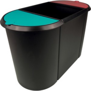 Helit prullenbak 'the double' ovaal zwart/rood 20+9 liter met deksel