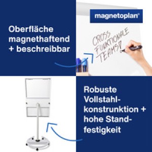 magnetoplan Mobiel Flipchart de luxe, magneetoppervlak, hoogteverstelling 1,75-2,00 m, wit/lichtgrijs