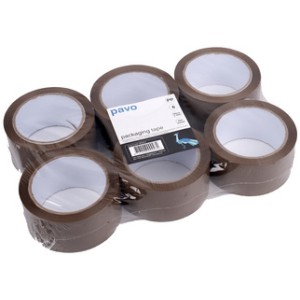Pavo verpakkingstape, 50 mm x 66 m, bruin, PP, 6-pack