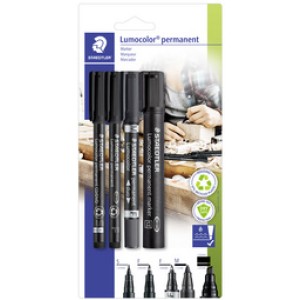 STAEDTLER Lumocolor permanente stiftenset, 4-delig, zwart